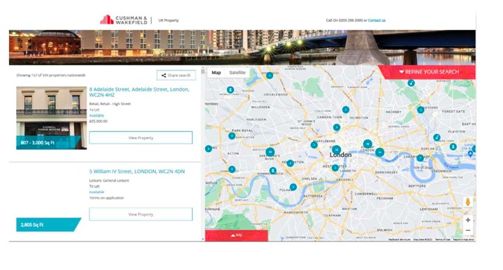 Cushman & Wakefield take advantage of a bespoke version of the ZipBox property search, with property data fed through from NovaLoca.